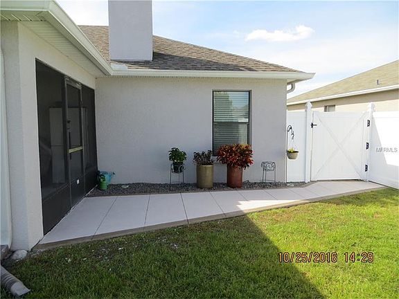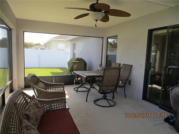 Beautiful, 3 bedroom/2 bath home with many upgrades. This home is completely move in ready with open floor plan, cathedral ceiling in great room, dining and kitchen area. New stainless steel microwave oven, refrigerator. Over sized kitchen with Corian countertops and center Island. Ceramic tile flooring in many areas. Carpet flooring in all bedrooms. Wood burning fire place in the living room. Master bedroom is a true suite with a glamour master bath, an oversized walk in closet, and laundry room with tub. Architecture shingles. Excellent curb appeal on the outside and vinyl privacy fence. Rain gutters throughout. An oversized 20x12 screen lanai with beautiful tile for your family enjoyment, overlooking an oversized backyard. This home is equipped with insulated block, energy efficient windows, and the exterior doors. Surround sound speakers, surge protectors, ballistic storm shields on the front and patio doors. Cable TV hook ups in every room in addition of CO 2 wired smoke alarms in every room. Call and make your appointment TODAY. 02/04/17