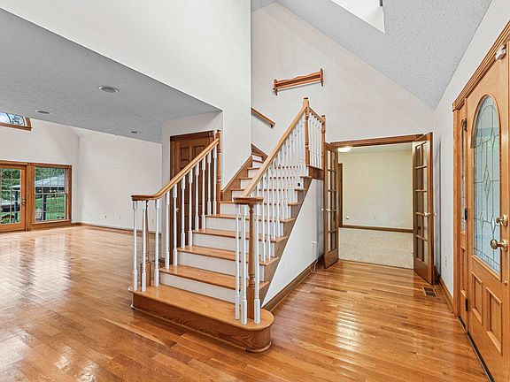 Welcome to this immaculately kept 1.5-story Cape Cod home, nestled in a 9+/-acre serene setting and designed for both comfort and entertaining. This one-owner gem boasts a wrap-around porch, inviting you to enjoy the outdoors in style. Venture inside to discover a 2-story foyer, spacious living room featuring exposed beams and rich hardwood flooring. French doors seamlessly connect the living area to the outdoor kitchen and patio enhancing the indoor-outdoor flow. Cozy up by the gas log fireplace or entertain in the outdoor kitchen area—perfect for hosting. The dining room is flooded with natural light creating an inviting space for gatherings. The kitchen is equipped with stainless steel appliances, thoughtfully placed lighting and outlets above the cabinets, and the convenience of a vegetable sink in the island. A cozy breakfast nook completes this delightful culinary space. Retreat to the main-level primary bedroom, featuring carpet flooring, a walk-in closet, and a luxurious en-suite bath with tile floor, a jetted tub and separate shower. A sliding glass door opens to the back patio, providing easy access to outdoor relaxation and amenities. The second bedroom on the main floor also features a walk-in closet and carpeting. Upstairs, the third and fourth bedrooms offer ample space with two closets each and access to large storage areas. Let the summer fun begin with the in-ground pool, complete with a newer liner (just 2 years old). The property also boasts, a newer roof (approximately one year old) a finished space above the garage with heating and a mini-split system perfect for crafting etc., and additional large storage closets. The property is completed by a barn with electric and concrete flooring, a solar-powered outdoor covered kitchen featuring a natural gas grill and burners, a firepit for cozy evenings, and a mobile home seat with city water, sewer, and electric. Two picturesque ponds and apple trees enhance the serene landscape, while the pool house includes a kitchen, full bath, heat, and window AC for added convenience. This home is conveniently located near Camp Landing Entertainment District and the area’s newest racetrack at Sandy Ridge, with easy access to major highways—only 3.4 miles from US 23 and 4 miles from I-64. This captivating home combines charm, modern amenities, and outdoor living, making it the perfect place to create lasting memories. Don’t miss your chance to make it yours in time for the holidays!  You should see it decorated!