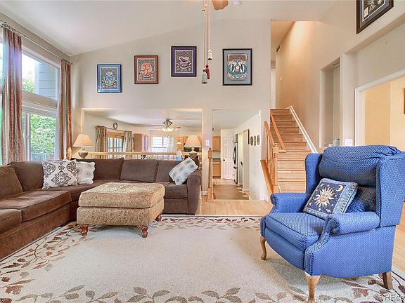This is a popular multi level floor plan in the desirable West Skylake Ranch subdivision! Offering a large covered porch you enter the home to a welcoming foyer and the soaring ceilings of the family room which flows nicely to the home office, which can also be conveniently used as a formal dining room or a great private play room! A few steps down to the large eat in kitchen with tile floors and kitchen island it has easy access to the spacious backyard which features a large stamped concrete patio and large irrigated lawn/yard space perfect for entertaining, playing or gardening. This home is one of few homes which has a gate in the back community owned fence giving access to the city maintained park and trail systems! On the same level as the kitchen is a nice bright laundry room as well as a powder bath and access to the attached 2 car garage and access to the nicely finished basement which could be used as a nonconforming 4th bedroom or a great space for family movie night as it includes a wet bar with built in wine & mini refrigerators. There is additional storage space in the large & easily accessed crawl space. From the main level the staircase flows nicely to the sleeping areas boasting a large master bedroom with vaulted ceilings overlooking the city maintained park and trail systems. The 5 piece master bath has a large shower, soaking tub and double sinks. Just down the hall are two nicely sized secondary bedrooms with large closets as well and a freshly update full bathroom. The home includes a newer solar system that is owned and not leased as well as extended bamboo flooring and staircase, a wonderful upgrade! The solar system (Approx $25,000 upgrade) reduced the average elec use bill to $19.91/mo 7/31/19 - 6/30/20. Large trees and the spacious stamped concrete patio make this a great space to entertain and enjoy family gatherings alike. This home is sure to go quickly! There is also a newer roof on this spacious conveniently located home!