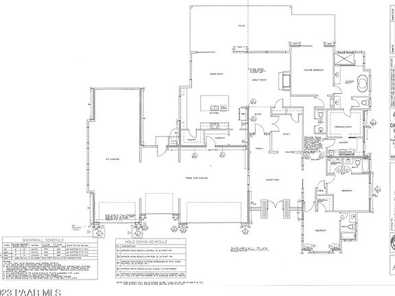 2672 Floorplan, modern elevation. 45' attached RV garage.Polyurethane spray foam insulated, lid and walls. 12' flat ceilings, hardwood flooring, tile flooring, quartz countertops, knotty alder cabinets, tankless water heater.Owned rooftop solar.Walkin zero entry tile shower