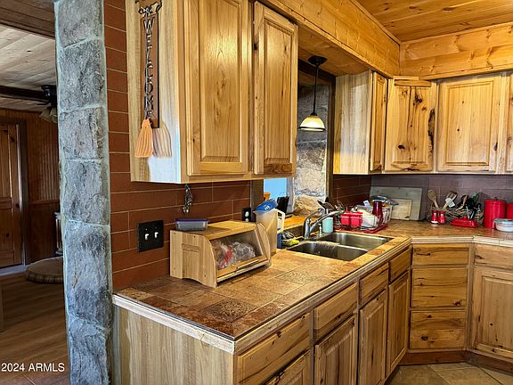 High up in the goldfields with its own well! A Classic Arizona Brick Rancher! 3/4 acre lot and RV parking is OK. Pride of ownership shows on this classic home (and neighborhood) A Classic Arizona rancher rustic appeal of knotty pine wood finishes through-out with modern color scheme flair on the exterior. The home has a shop that is great for parking a side by side after you take a ride at Bull Dog Canyon down the road... or convert it to a home office, guest area or a large ''sports den''. Behind this home is another shed that could be converted to a great craft room, she shed. There are other shade structures for storage of your other toys as well. This home has its own well.. and has a lot of opportunity for a seasonal or year around resident