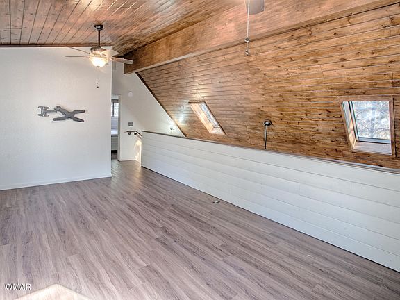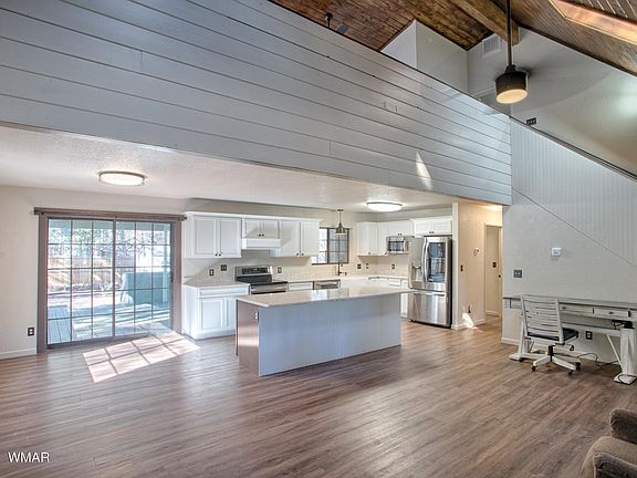 Beautifully REMODELED cabin in the Pinetop Lakes Country Club! Open concept home with a dream kitchen, beautiful cabinetry, granite counter tops, wood laminate flooring throughout. Vaulted ceiling with T&G, efficient pellet stove ! Amazing upgrades throughout with large windows.. This adorable 2 bed PLUS a loft and 2 baths with a large Master and walk out deck are what you've been waiting for. 3 LARGE covered decks. Large lot with shed. One bedroom + Bathroom downstairs with loft and master and master bath upstairs. Enjoy the 18 Aspens PLUS 15 more trees on a drip system. Rec. center privilege's with large swimming pool, hot tubs, workout facility, Pickle ball courts, Tennis, basketball and Volleyball, pool and ping pong tables and lots of activities. All offers reviewed on Sunday
