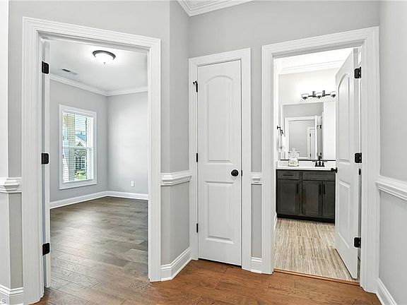 Exceptional 3BR/ 3 bath home built in 2024 by Isenhour Homes with recent seller upgrades making this home move in ready now! Open floor plan on main level glowing from the natural light and beautiful engineered floors. Living room is accented by a coffered ceiling, gas fp, and pre-wired for a 5.2.2 home theater system and includes four Bowers & Wilkins ceiling speakers. Additional sunroom/ flex space available off LR that leads to fenced in back yard with custom brick firepit. Spacious kitchen with island has ex-large sink, under cabinet lighting, tile backsplash, and quartz countertops. Primary BR on main level features tray ceiling, large walk in closet, and separate shower with upgraded rainfall double shower head. UL hosts the 3BR w/ ensuite and pre wired for 7.4.4 home theater system. Additional features that set this home apart include (2) 240V outlets for electric car already installed in the garage. Tankless, gas water heater. Air fryer/ convection microwave and gas stove.