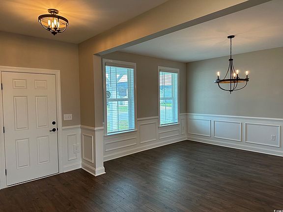 MOVE IN READY! UPGRADES GALORE! Charming front porch, back porch with a lake view, and a corner lot. This Windsor home features 3 Bedrooms, 2.5 baths, kitchen opens through a butler's pantry into the dining room/flex room, and a covered porch with a lovely lake view. The beautifully equipped kitchen features Level 3 crisp white 42" Aristocraft cabinets with glass mullions and crown molding, Alpine Winter quartz counter tops, graphite Conastee Collection Progress Light fixtures, backsplash tile, Whirlpool Stainless steel kitchen appliances (natural gas range, over the range microwave vented to the exterior, dishwasher), a designer trim package, crown molding, chair rail, and picture molding, lawn irrigation system, window blinds throughout, and oil rubbed bronze Moen plumbing fixtures and door hardware. This beautifully finished home also includes scorched oak Mohawk Rev Wood flooring with Pet Plus protection in the living areas and primary bedroom, upgraded Daltile in the baths and laundry room, a natural gas tankless Rinna water heater, gutters, and Agreeable Gray Sherwin Williams paint throughout. The first-floor primary bedroom boasts a tray ceiling, bay window, and huge walk-in tile shower, double vanity, and generous walk-in closet. 100% Energy Star Certified and EPA Indoor AirPlus Qualified with the complete Tyvek house wrap system, spray foam insulation, and Aeroseal/Aerobarrier which means improved energy efficiency and indoor air quality to give you a healthier, and more comfortable home with less pests, less moisture, less air loss, and a lower utility cost. Amenities include a premier location (2 miles to the shopping and dining venues in Carolina Forest, 6 miles to the beach, 7 miles to Market Common, and minutes to Highway 31), a community pool and clubhouse with a catering kitchen, gathering hall, and exercise room.