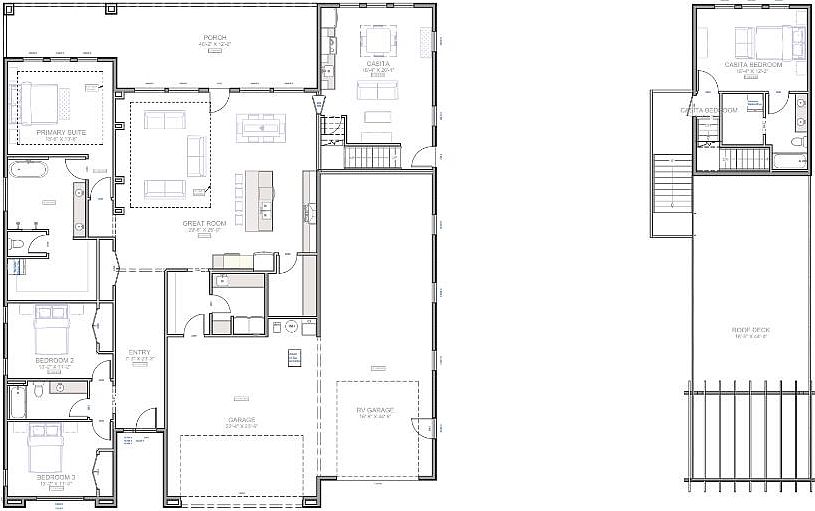 Great roomSpacious primary suiteClean modern linesWalk-in closetSleek low-pitch roofs