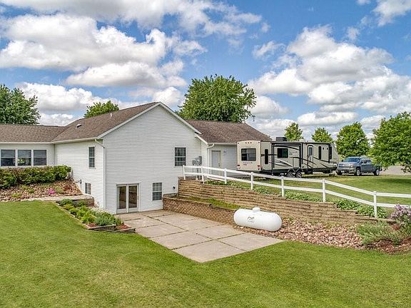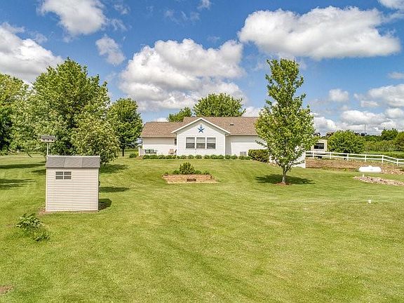 Very well maintained 3+ bedroom, 3 bath ranch home on 5.19 acres. Built in 2006, features include lg main floor laundry area off attached garage, open concept kitchen/dining/living, 3 bedrooms on main level (including master with on-suite & walk-in closet) & 4 season room. LL walkout with large family room, additional bath & bonus room & shop with lots of storage. More storage in the 32' X 52' pole building with electric, 14 ft door & concrete floor. Beautifully landscaped with double driveway.