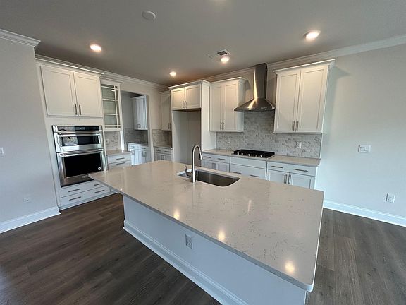 HOME IS MOVE IN READY! Summit plan backs to mature trees w/ covered back patio! Home provides best of open-concept living featuring 1ST FLOOR GUEST BED w/ adjacent full bath! 1st floor includes formal dining, walk-in Butler's pantry, GOURMET KITCHEN featuring Lyra Quartz counters w/ island, White cabinets, GAS COOKTOP w/ HOOD vented out & combo wall ovens. Kitchen opens to eat-in dining & large family room complete w/ gas fireplace - perfect for entertaining! 2nd Floor features 3 additional guest beds - 2 sharing a full bath & 1 complete w/ ensuite. Find walk-in laundry, & MASSIVE enclosed rec room w/ elegant double door entry. Primary suite features ensuite bath w/ luxurious tiled shower, tile surround soaking tub w/ frosted privacy window, water closet, and dual sinks! Hardie siding, smart home package, tankless water heater, coffered and tray ceiling, etc.