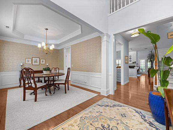 Gorgeous End-Unit Townhome that lives large! This beautifully updated 3-bedroom, 2.5-bathroom end-unit offers 2,775 sq ft of spacious living, a 2-car garage, & a screened porch perfect for year-round enjoyment. The grand 2-story entry & vaulted family room ceiling create a bright, open feel, complemented by a cozy gas log fireplace. Remodeled eat-in kitchen features quartz countertops, stainless steel appliances, new Bosch dishwasher & pull-out cabinet shelving. Entertain in the elegant formal dining room boasting tray ceiling & classic wainscoting. The 2nd fl offers flexibility w/an extra office & loft space. The primary suite is a true retreat with a luxurious spa bath, zero-entry shower, soaking tub & custom walk-in closet. The spacious secondary bedrooms share another full bath. Additional highlights include plantation shutters on the main level and a new HVAC system installed in 2025. A perfect blend of style, comfort, and low-maintenance living, all conveniently located near Millbrook Exchange Park, Durant Nature Preserve, Hwy 70 & I540!