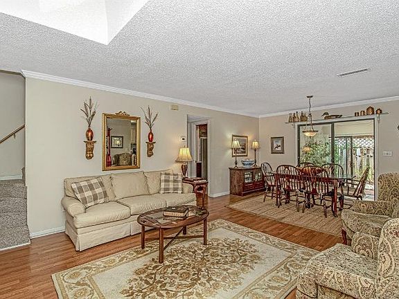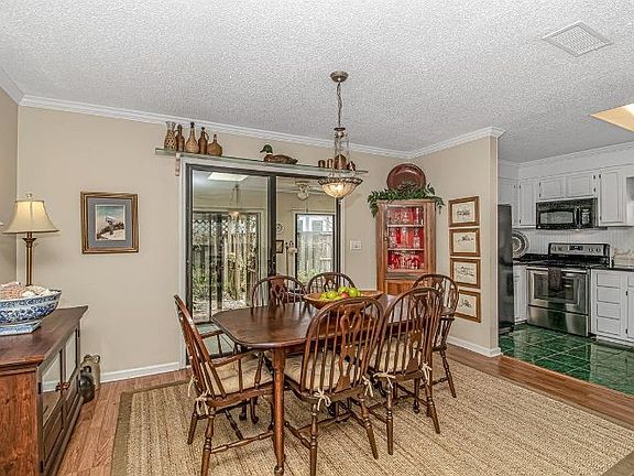 A rare opportunity to own a single family patio home that is 2 blocks from the beach, located in the desirable Tilghman Estates community of North Myrtle Beach. The first floor has been updated with vinyl plank flooring throughout. With the large primary bedroom on the first floor and two additional bedrooms upstairs, this home will allow plenty of space for all of your family's needs. The living room offers a fire place to keep cozy on those cool winter evenings. With plenty of room for seating in the dining area, this home has been designed to use every space to the advantage of the owner. Step out into your year round Sun Room that is an ideal space to relax and put your feet up. Additional storage area within the laundry room gives this home an added bonus. You will never want to leave your outdoor oasis. Mature landscaping and a keen eye for nature have utilized the outdoor space in a remarkable way. The outdoor shed, with electric and a window ac unit, will convey, providing even more storage. Evenings spent on the extended large covered porch will be the nights dreams are made of... enjoy Carolina sunsets with a cool beverage as you relax looking out over your backyard oasis.