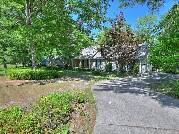 One level home with an excellent 410sf flex roof in the basement with double doors to the outside-perfect for an office, gym or storage! Welcoming covered front porch opens to a foyer with beautiful trim. Foyer is open to the dining room & living room. French doors open from the living room to the back deck to enjoy the privacy of the half acre+ lot. Living room & dining room open to kitchen which features tons of cabinetry, center island, granite countertops with undermount sink, pantry & breakfast area. Spacious utility room/half bath off the kitchen offers a great space for storage & organization. Split floor plan with a separate primary bedroom suite which offers an en-suite bathroom featuring a step in shower, double sink vanity with a built in dressing table, water closet & walk in closet. Excellently maintained with a newer HVAC & a brand new roof installed by Superior Roofing. Backs up to Point University. Ready for a new owner to make it his or her own! Handi-cap accessible