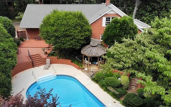 This stately custom-built home is situated on almost an acre. Elegance & quality are in every aspect of the home. Original hardwood floors throughout most of the main level, arch doorways & solid wood doors show off the oversized rooms. Main level master bedroom suite features a spacious room attached which leads into a spacious walk-in closet. Generously sized great room featuring gas log fireplace accented with builtins. Upstairs hosts 2 bedrooms, 3rd full bath, & oversized recreation room. Closets galore & walk-in attic. Kitchen is light & airy, tile floor, pull out pantry drawers, desk area, & a dutch door leading to the sunroom. Sunroom has a separate heating & cooling system making it the perfect temperature year-round. Central heat/AC set up with a dual-zone system. The home's outdoor space is amazing! Inground pool with brick patio for outdoor entertaining. 1/2 Bath off the pool area in the gazebo. Security system, a heat pump (2017), attached two-car garage with a mud room.