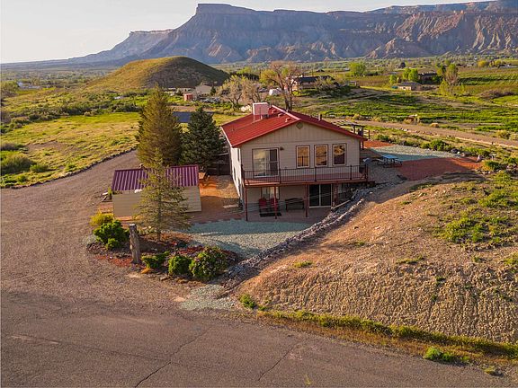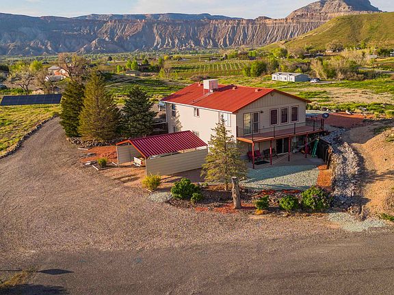 Views Views Views! Take a look at this wonderfully maintained 5.04 acre property perfectly located in the heart of East Orchard Mesa in Palisade! 4 Bed 3 Bath, 2520 sq ft. Enjoy sunrise and coffee on the large front deck. The property has an owned solar system, and a massive 30x50 shop, complete with reinforced 4" concrete perfect for a lift if wanted. Main floor primary bedroom, lots of natural light, tons of storage, xeriscape yard, and walk out basement. Don't miss your chance to own this gem! Come take a look, you won't be disappointed.