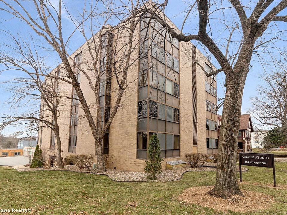 Find your way home to this spacious condo. Grand at 36th Street is a well-maintained & secure brick building 21 units. Prime location in the Grand/Ingersoll neighborhoods. Unit faces Grand Ave & south facing bank of windows in the over-sized living room. Lots of natural light. Custom built-ins provide lots of convenient storage. Dining area. Kitchen all appliances. Built in shelves/pantry & closet in entryway. Huge MBR WIC, full bath including tub/shower & vanity quartz countertop & backsplash. Good sized 2nd bedroom or office. Hall bath big walk-in shower & vanity quartz countertop & backsplash. There is an elevator 1 indoor garage space plus extra storage. Laundry area & trash chute on each floor. Grand at 36th St offers two guest suites may be rented for out-of-town guests. Mail room/game room/gathering room. Non smoking building. All units are owner occupied. Pets are allowed: A total of two (2 dogs or cats 30 pounds or less.