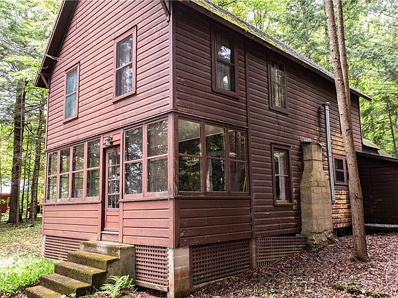 Seventh Lake Waterfront-Have you been patiently waiting to buy on beautiful Seventh Lake? If so, you may not want to miss this opportunity! A well rounded get away with boathouse, dock and lean to, 'The Fawn' cottage has simple but authentic rustic wood finishes throughout and is spacious with five bedrooms, bath, kitchen, living-dining area. A bright and airy glassed-in porch overlooking 132'of sandy frontage is a natural family gathering spot for morning coffee, rainy day games or eating that cookout meal. With a little 'TLC', new life and soul will be breathed into this vintage, but solidly built seasonal.