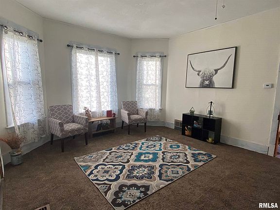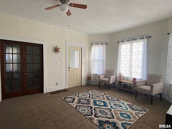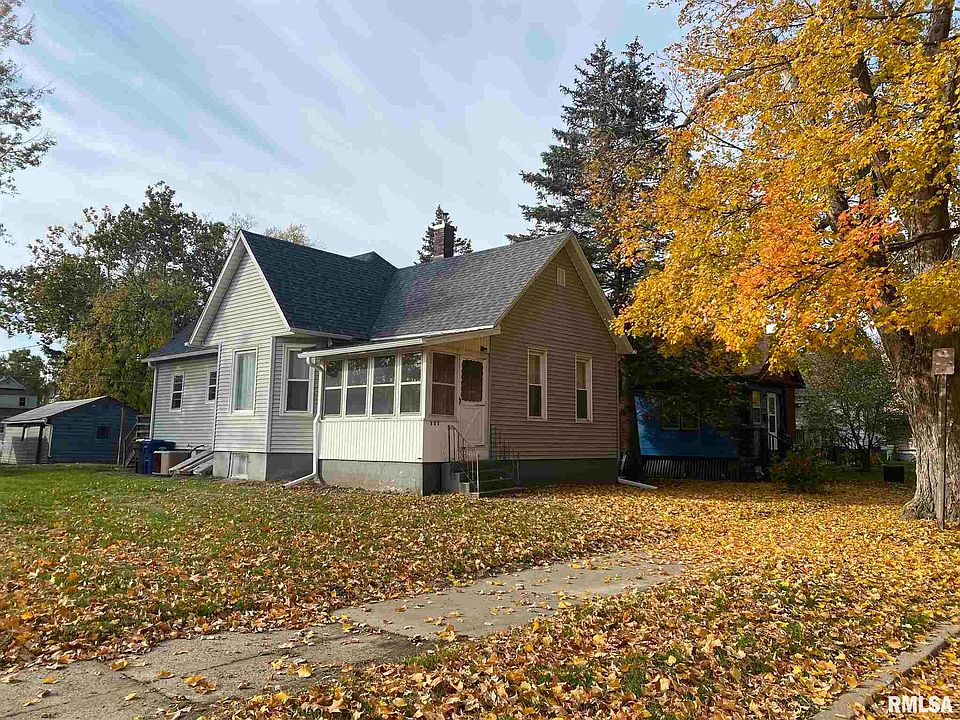 2 bedroom home on a big corner double lot! Updates include: New roof with new decking 10/2021, new gutters 10/2021, walls are re-insulated with blow-in insulation, remodeled bathroom, new flooring throughout, freshly painted, refinished cabinets, and electric panel is being replaced. Master bedroom on the main floor with a huge walk in closet that previously was used as a bonus bedroom. 2nd bedroom is upstairs. Main level laundry room used to be a bedroom and there are hookups still in the basement if you want to move the laundry back down. Screened in porch in the front and a deck in the back. One car garage. Carport is being removed. Owner is a licensed Realtor in IA/IL.