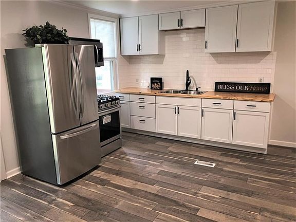 This wonderful, spacious two story home located in the Blue Ribbon Quaker Valley School District has a large level lot with mature landscaping. Relax or entertain on the large back deck and enjoy the shade. The home has been updated and includes a newer kitchen with white cabinets, aged bronze hardware, custom pine counter top, and white subway tile back splash. Stainless steel gas stove, microwave oven and refrigerator are newer. Two full bathrooms are newer and include custom tile. Original floors have been covered with wood plank style laminate, all exterior and interior doors have been replaced, 23 new multi-pane windows have been installed and there is new dual zone central air conditioning offering a level of comfort during hot summer days. Wood paneling was removed and replaced with drywall, other drywall added over existing walls, white trim and crown molding was added, and the interior was painted in neutral colors. Rooms downstairs offer a variety of possibilities.