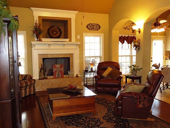 Amenities GALORE! This 4 bedroom 2 and a half bathroom home has a grand entrance with 20ft ceilings. Upon entering the home you will see the beautiful chandelier and wrought iron staircase. Immediate to your right I the formal dining room with custom trim, large window for natural light, and hardwood floors. Immediately to you left is the bonus room, which can be used as a sitting area or office space connecting to the main bedroom. The bonus room and main bedroom features vaulted ceilings and large windows as well with their 2in. faux wood blinds. The Main bathroom is to die for! It has custom antiqued cabinetry tumbled marble backsplash, a jetted tub for two, and a walk-in shower. It also has two vanities for those of us that need extra counter space. The framed mirrors in the Main bath are gorgeous, as well as the lighting. Through the door in the main bathroom, you will find a huge walk-in closet!!! The great room features hardwood floors, beautiful has fireplace, and architectural arches going into the kitchen. The kitchen is amazing. It also has a vaulted ceiling over the breakfast area, granite countertops, tumbled marble backsplash, and custom tile floor with Italian accents, a convection oven, and an oversized pantry. The additional 3 bedrooms and full bathroom are located up the wrought iron stair case that overlooks the great room, breakfast area and kitchen. The three bedrooms are freshly painted and are full of natural light. Two bedrooms offer double closets and one bedroom has two walk-in closets. It also has another door leading to the attic for your storage. Outside you will find a huge covered porch that is big enough to feel like an outdoor living room that looks onto the pool. The pool also has a new pool pump and the workshop you will see, is wired. There is more! You are only a block away from a neighborhood park that’s over an acre. It has a walking/jogging trail, mature trees for picnicking, and a giant play set for children. It’s beautiful.