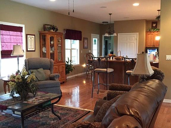Country living close to town. One owner custom built home has an open floor plan and room for your family. This spacious home features multiple living areas with hardwood floors and tall ceilings. Enjoy cooking in the gorgeous kitchen with tons of cabinet space and a walk in pantry. The master suite has TWO walk-in closets. The master bath features a shower, jetted tub, double sinks and radiant heated flooring. Enter the screened in porch from the master suite or kitchen and enjoy the beautiful landscape yard. The finished walk out basement has additional living areas with radiant heat to keep it cozy in the winter and includes a 4th bedroom and bath. New stainless steel appliances just installed along with new A/C condenser and A coil. 40 x 60 shop out back.