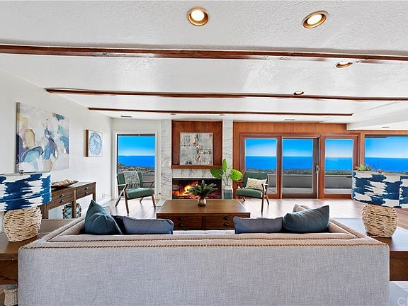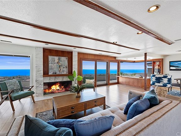 From its lofty perch in the hills of San Clemente, this spacious single-level home welcomes unobstructed panoramic views of the glistening ocean, coastline, Catalina Island, Dana Point Harbor, dazzling sunsets and San Clemente's historic pier. By day or night, the enchanting vistas create a dramatic backdrop for carefree living in the spacious residence, which extends approximately 2,031 square feet and hosts four bedrooms, two baths and a two-car garage. A generously sized private courtyard with custom pavers and hardscaping provides a warm welcome, introducing an open-concept living area with fabulous ocean views and a handsome fireplace. The open ambiance continues to the kitchen, where a beautiful remodel showcases granite countertops and stainless steel appliances. Granite is also featured in a the secondary bath, and separate master suite is enhanced by romantic ocean views. Style is complemented by exposed wood beams, new flooring with no carpeting in the home, and newer energy-efficient windows and multiple sliding doors that create and indoor/outdoor atmosphere. The home's outstanding location is extra convenient to miles of beaches, shopping and dining at Dana Point Harbor and downtown San Clemente, and stellar schools that serve all grades. Note: Just completed renovation inclusive of new paint, new floors and approx. 14 caissons around the exterior of the home.