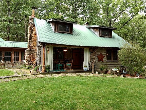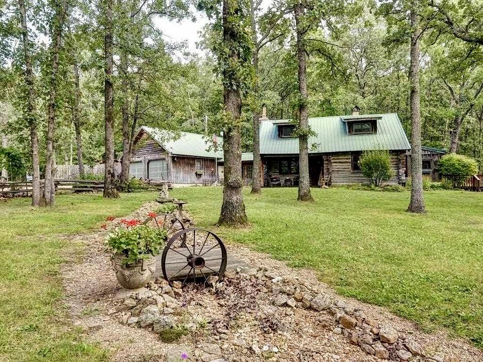 This is it...the home you have always dreamed of can now be yours! Step back in time to the beautiful, serene village. You will have your breath taken away from the moment you enter the gate. This manicured 3.62 Acres beautifully displays a hand-built log home 3 Bedroom 2 Bath)with 2 car attached garage. Complete with furnace, air, gas fireplace, and wood stove. Built by the one and only Ron Eckwould, this log home is full of treasures, including a reclaimed bookcases from a school in Oklahoma and a wall from an old Bank. The kitchen, dining room, and bathrooms are all a work of art. There truly isn't another like it. Perfect in every detail, the historic reproduction is profound. Down the lane sits a log cabin with central heat/air and bathroom, perfect for in-laws or even a bed and breakfast. Property is so enchanting couples have booked for weddings. And if that's not enough to make you fall in love there is a Post office cabin, chicken coop, shop, storm shelter, and so much more.