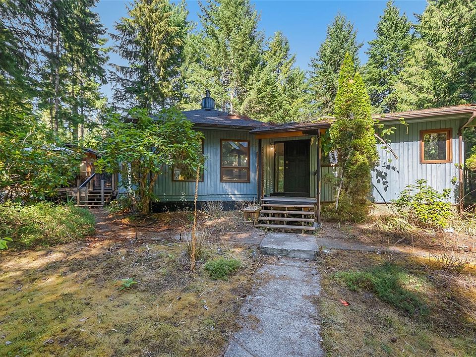 Inspiring Qualicum North Acreage! A diamond in the rough with amazing potential! Tucked away in the forest just north of Qualicum Beach, this 2.69-acre property offers a 2 Bed/3 Bath Main Home, a 1 Bed/1 Bath Guest Suite, a detached 3 Bed/1 Bath Cottage, a large Garage/Workshop, and outbuildings. A gated entry and winding drive lead to the 2170 sqft Primary Structure, where the Main Home boasts an airy open-concept layout with post-and-beam accents, a circular vaulted cedar ceiling, skylights, OS windows, a fireplace, and maple floors. The skylighted Island Kitchen includes a pantry, while the Living/Dining Area opens to a large west-facing deck. The Primary Suite has a WI closet and jetted tub, plus there’s a 2nd Bedroom, Bath, and Laundry Room. The Guest Suite features a Kitchen, Bedrm and 3-piece Bath, while the 703 sqft A-Frame Cottage offers a Kitchenette, 3 Bedrms, a 4-piece Bath, and deck. The acreage hosts sheds, a gazebo, a greenhouse, and ponds. Visit our website for more.