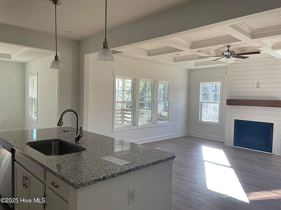 The principal bedroom suite is on the main floor. En-suite bathroom with walk-in fully tiled shower and garden tub. 3 more bedrooms upstairs. 3.5 bathrooms. Lovely open kitchen layout with large island. Office or formal dining-room to the front of the house, with a good sized eating area facing the back. The living-room is cozy and centrally located for all the main floor has to offer. there is a gas fireplace and very attractive coffered ceiling.