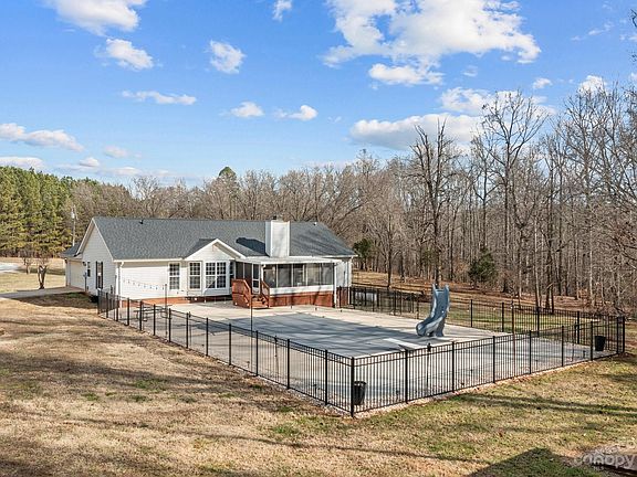 OPEN HOUSE CANCELLED! This 3 bedroom, 2 bathroom home is tucked away on a private road, while being minutes from I-85 providing the perfect blend of tranquility and convenience. You'll love the spacious bedrooms, additional flex room, eat-in kitchen, separate dining room, and large living room for a comfortable entertaining space. Mentionable upgrades include a whole house water conditioning system, tankless water heater as well as electric water heater, and the perimeter of the fence is already wired for an invisible fence system. Step out into the sunroom that overlooks the beautiful in-ground pool, creating a perfect oasis for outdoor relaxation, ideal for hot summer days and quiet nights. The 1.5 acre lot includes an expansive 30x40 workshop that provides ample space for hobbies or storage. Shop has 220 outlets and a 50 amp service for RV/camper hookup and the shed behind the pool has electricity as well.