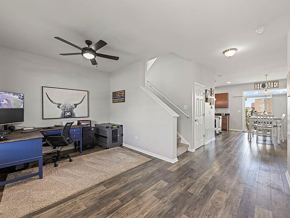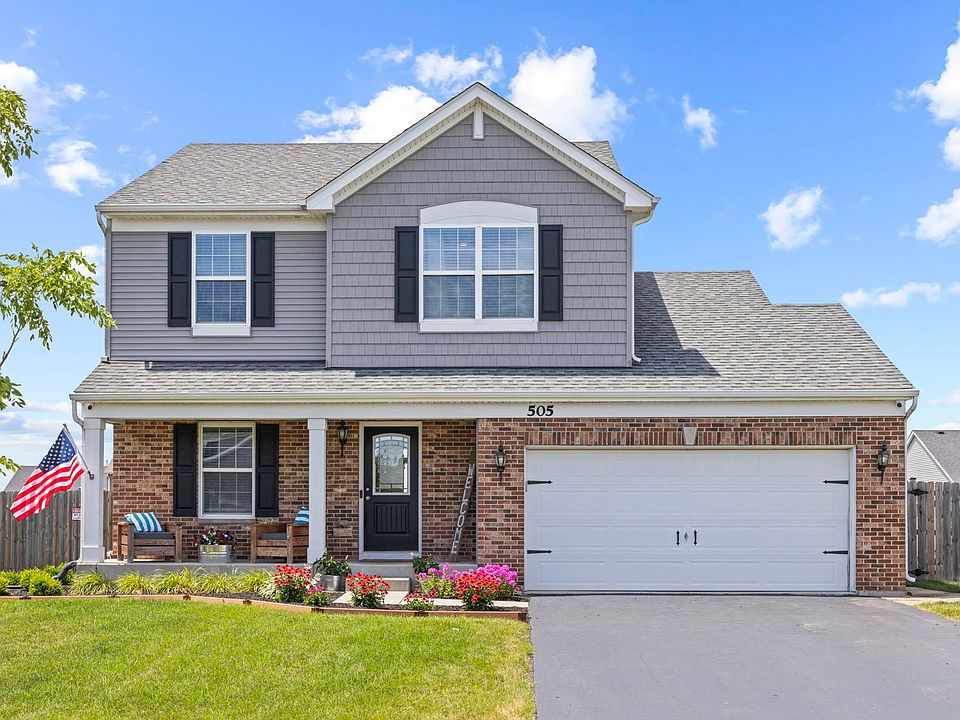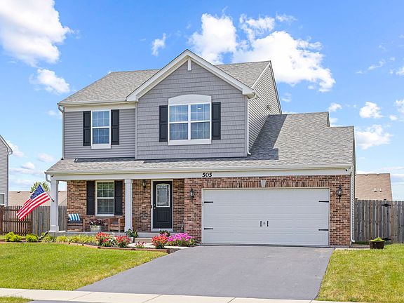 This beautiful Geneva model in Hunter's Ridge features 3 bedrooms and 2.1 bathrooms across 1,756 sqft. Hunter's Ridge is conveniently located off Ridge Road between Plainfield and Shorewood, with students attending Minooka schools. Facing east, you can enjoy the sunrise from the front porch with your morning coffee and the sunset from the back deck in the evening. The huge, fenced-in yard provides safety and privacy for children and pets. Inside, the open floor plan flows seamlessly with recently installed luxury vinyl planking. The front flex room, currently used as an office, could also serve as a living room, playroom, or formal dining room. The large family room features a lovely gas fireplace and numerous windows that welcome in the afternoon sun. The kitchen boasts abundant cabinet space and granite counters, with a portable island that can stay. All bedrooms are on the second floor, along with the laundry. The spacious master suite includes a tray ceiling, a deep walk-in closet, and a private bath. The full basement offers nearly 1,000 extra square feet that can be finished, with lookout egress windows to the backyard in the English style basement. The location provides easy access to I-80 and I-55 for commuters, and is close to shopping, entertainment, and parks. Don't miss this fantastic opportunity to buy a home that feels like new without the wait and cost of new construction.