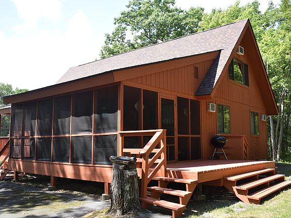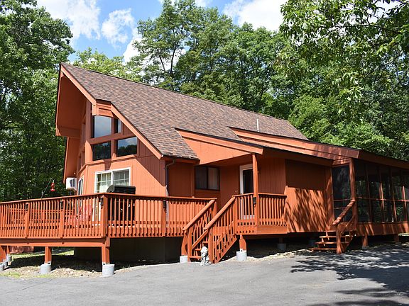 Ultra Private - Backs to State ForestOne of a kind chalet on top of a hill with almost 2 acres of total privacy. Adjoins over 10,000 acres of state game lands. Offers hunting, hiking and enjoying nature at its best. Immaculate 3 bedroom, 2 full baths, hardwood floors, cathedral ceilings, stone fireplace, new roof, new septic, new deck just steps away from lower Hemlock Lake. All this in the best amenity filled community., Beds Description: 1 BED 2nd, Beds Description: 2+Bed1st, Beds Description: 1 BED 2nd, Baths: 1 Bath Level 1, Baths: 1 Bath Level 2