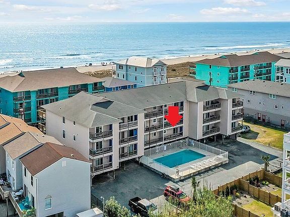 Enjoy sea breezes and peek a boo ocean views from the huge covered deck of this updated 2 bedroom 2 bath unit just steps away from your choice of 2 public beach accesses! This condo is in an ideal location, only a few blocks from the Carolina Beach Boardwalk. The unit is currently being used as a primary residence and you will quickly see how well it has been maintained. Inside features include LVP flooring throughout, newer kitchen window and sliders, stainless steel kitchen appliances, new stacked washer/dryer combo ( 6 months old), walk in closets in both bedrooms and updated baths. The covered back deck overlooks the community pool, a perfect spot for relaxing after a day at the beach. The spacious front deck was fully remodeled in 2021 with new sliding doors, new ceiling, new railings, new flooring and new siding, and the HVAC unit is 2 ½ years old. The HOA covers master building and flood insurance, pest control, water, sewer, trash, plus internet and cable making this a convenient bargain for your beach getaway, vacation investment property or even your primary residence.
