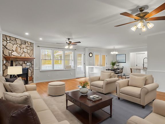 Updated 1.5 story home offers a comfortable ranch-style living with a second level bonus room, situated on over an acre of land. The spacious and updated kitchen features new granite countertops, a tile backsplash, and new flooring, and opens to the breakfast area and great room with a gas-burning stone fireplace. There is also a formal dining room, office or study. The owner's suite boasts a luxurious bathroom and has access to the screened porch. On the other side of the house, you'll find two secondary bedrooms and a fully renovated hall bathroom with a walk-in shower. The large deck and screened porch overlook the wooded and fenced backyard, providing a perfect space for entertaining. The sizable bonus room upstairs can be utilized as an office, playroom, guest area, or flexible space. Additionally, there are two unfinished areas upstairs that can be used for storage or have the potential to be finished for additional bathroom and/or office/flex space. With its convenient location just off highway 42 and within 5 minutes of highway 70, and less than 20 minutes to I40, this spacious house offers tons of potential. Clayton is a vibrant and growing town. It offers a variety of amenities and attractions for residents to enjoy. The downtown area of Clayton is filled with local shops, restaurants, and entertainment venues, providing a charming and lively atmosphere. The town is also known for its parks and recreational areas, offering opportunities for outdoor activities such as hiking, biking, and picnicking. Clayton is home to excellent schools, making it an ideal place for families. Additionally, the town hosts community events throughout the year, fostering a strong sense of community and providing opportunities for residents to come together and connect. With its close proximity to Coats and its own unique offerings, Clayton is a wonderful place to live, work, and play.