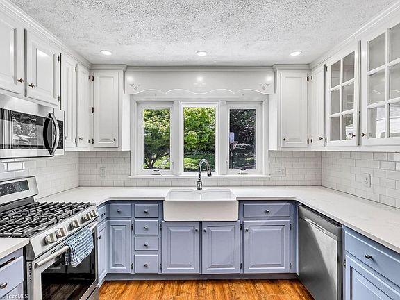 Great Location!! Brick home with very nice kitchen, bathrooms, flooring, windows (2018), roof (2018), gas tankless water heater (2021) 2 car garage with opener, sunroom, front porch, patio, & gazebo on .52 acre Features: hardwood floors & masonry fireplace with gas logs, hearth, & mantle. One level minimal steps, half acre of land & 2,135 heated feet 3 bedrooms, 2 full bathrooms, kitchen, laundry, living room, dining room, great room & sunroom, 680 square feet of 2+garage space & 200 ft2 of rocking chair front porch on corner lot. New elementary & middle school planned across the street. Nice lawn & landscaping provide back drop to porch sitting & people watching especially from the porch sunroom or rear yard setting area. Private concrete driveway on Emerald St. provided extra parking or perfect place to play basketball, soccer, or tennis, Connected to greenway, parks, hospitals, colleges, churches, downtown, arts, culture, sporting events, coffee shops, breweries, retail, & jobs.