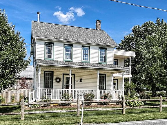 Welcome Home to this fabulous renovated farmhouse w/ the charm of original softwood flrs, exposed beams, built-in bench seating & bookshelves, & cold cellar under barn. Add modern conveniences of stainless appliances, large pantry, replacement windows, kitchen island w/ wet bar, central vacuum, Master BR walk-in closet & dressing rm, public water/sewer & well for outside water, dry basement system & 1st flr laundry. Plus a 2sty barn, potting shed, 2 car garage, numerous flower gardens, vegetable garden, outside deck & fire pit for entertaining, 1Yr Home Warranty. CALL TODAY!!