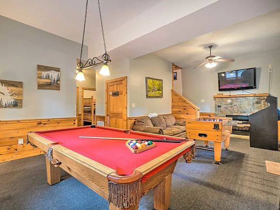4+ Star Reviews on VRBO! Currently SELF managed under EVOLVE. 2021 Rental $114,686.76 2022 Rental $88,040.35. $86,657 for 2023. Huge Upgrades & Maintenance done while they have owned it! 3 miles to Dollywood! Minutes to Parkway, 10 min to downtown G-burg! Sleeps 16. Situated in one of Pigeon Forge's sought-after subdivisions, centrally positioned in town & easily accessible via a non-winding road accessible throughout all seasons. Every bedroom has a bathroom. 7 flat-screen TVs w/ cable, farmhouse-style dining table (seats 16), gable window, 2 gas fireplaces, foosball table, arcade machine, pool table. KITCHEN: Fully equipped w/ cooking basics, stainless steel appliances, microwave, blender, drip + Keurig coffee maker, knife set, ice maker, breakfast bar. Bedroom 1: King Bed, Bedroom 2: King Bed, Bedroom 3: King Bed, Bedroom 4: Queen Bunk Beds, Bedroom 5: Queen Bunk Beds, 4 Twin Bunks in basement. 2- story covered decks + covered front porch, rocking chairs, hot tub, community pool.
