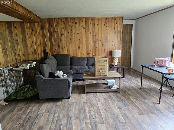 Yard has an abundance of trees and bushes and has great potential to incorporate raised beds for gardening. Dog run in the back. Fencing all around the home. Entry from carport to side porch enters into the kitchen. Landscaping adds privacy. Each bedroom on opposite ends has its own bathroom. Reasonable land lease.a bedroom on each end of mobile home with living room and kitchen in the center area. Handy utility by the side door.