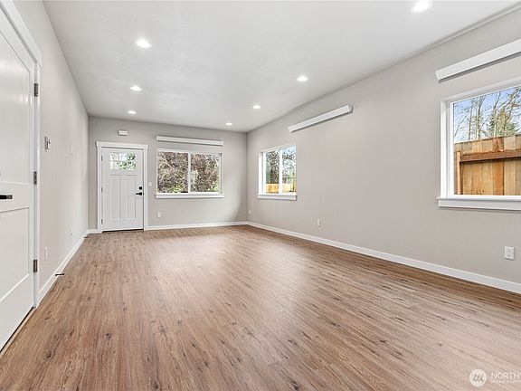 Stunning New Construction One-Story Townhome! Discover this beautifully designed 1,491 SF home with spacious, open layout. The modern kitchen boasts upgraded stainless appliances, walk-in pantry & seamless flow into the dining & living areas! Retreat to the luxurious primary suite w/ walk-in closet & en-suite bath w/ dual sinks. Enjoy durable LVP flooring & enhanced privacy w/ Rockwool sound barrier walls between units. Stay comfortable year-round w/ ductless heat pump for efficient heating & cooling, plus alternative radiant heaters. Additional highlights include extra-deep, 1 car garage for storage, covered back patio, fully fenced yard & above the floodplain. Located w/in walking distance of downtown Everson & Riverside Park.