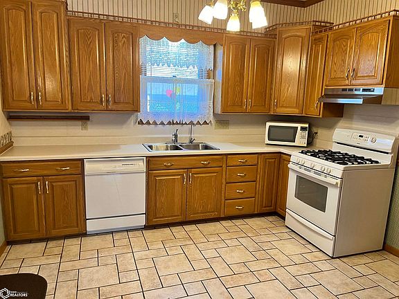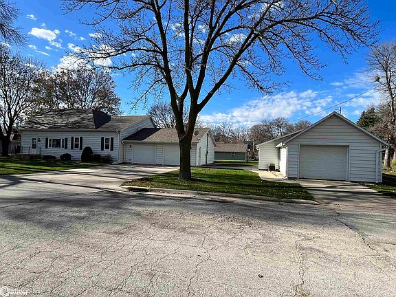 Wonderful house that you can move right into! This home features a large living room open to dining room, both with newer picture windows for an abundance of sun light. The eat-in kitchen has been up-dated. There are 3 bedrooms, with the 3rd bedroom you could use as an office. Bathroom has a jetted tub/shower. The attached double garage is heated with 2 floor drains. The extra garage is heated & has A/C. There is an attached storage shed on the single garage. Behind this property is a RV parking space. Gutter Guards were installed 2021. Property comes with extra lot to the west of house.