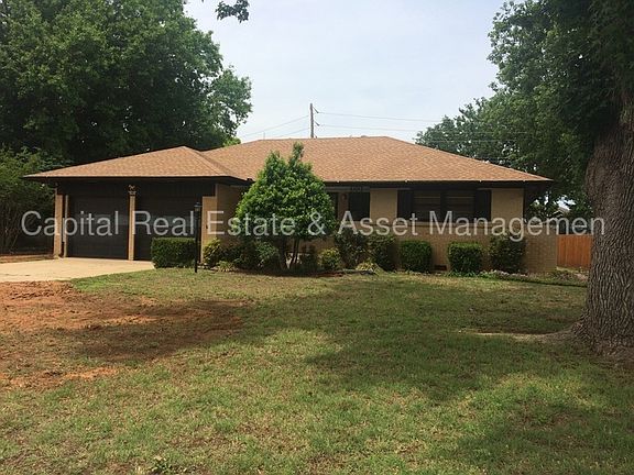 Lovely home on quiet tree-lined street. 3 beds, 1.5 baths, 2 car garage. Hardwood floors through out the home. Updated kitchen with solid surface counters and ceramic back splash. Built-in electric cook top and oven, refrigerator, dishwasher and washer and dryer are provided. Spacious dining room with french doors that open to the back patio. A large 2 story 16x20 shed is also available for your use. Great covered front porch to relax and enjoy a quiet cup of coffee in the morning. Ceiling fans throughout the rooms and central heat and air. Pest control and lawn care is taken care of for you along with the flowers and flower beds. All maintenance issues are taken care of for you, from air filters down to the light bulbs. All active Military and Veterans receive 10% off. Close to Tinker, Hidden Creek Golf Course, Shopping, Dining and downtown OKC. Rental Terms: Rent: $1,350, Application Fee: $35, Security Deposit: $1,350 Pet Policy: Cats not allowed This property allows self guided viewing without an appointment. Contact for details.