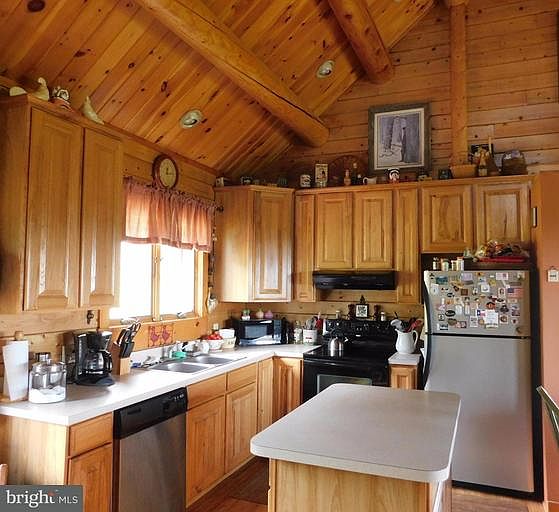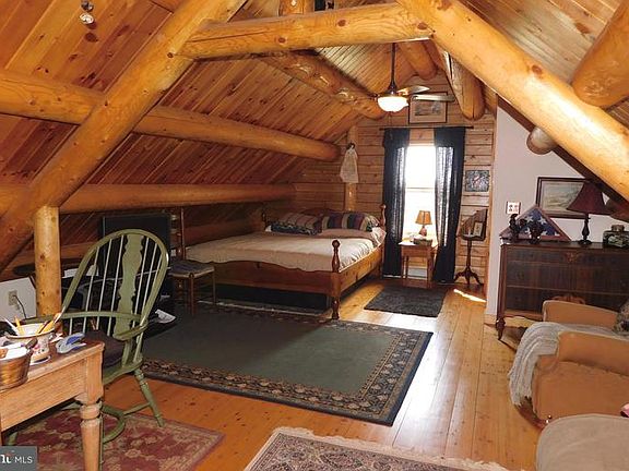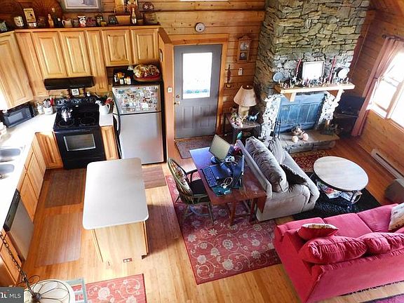 Come view this log home with beautiful view from the front covered porch! Home offers open living room, dining and kitchen, with upstairs loft bedroom, oversized master bedroom on main level, (was to be 2 brms owners made one). Finished basement- rec room with wood stove, bedroom & bath that can be closed off from rec. Sliding door from basement led to patio with fire pit. Come view today!
