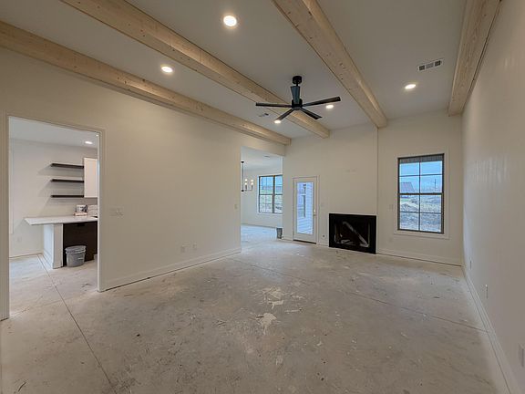 INCENTIVE ALERT: Builder will install faux wood blinds and give $2500 in seller paid closing costs if under contract by 11/10/25. New construction nearing completion! Estimated completion mid November 2025. Drywall phase. One story - ranch floor plan on a flat lot. Enter through entry foyer with coat closet in a large family room with 11 ft ceilings and fireplace will have wood beams on ceiling. Kitchen features island bar and dining area. Formal dining/flex room. Large primary suite with very large walk-in closet with tons of room for storage and private bathroom with tiled shower and 2 sink vanity. Two additional bedrooms with additional full bathroom. Carpet only in bedrooms LVP remaining areas. Covered rear patio in back. Broker/owner.