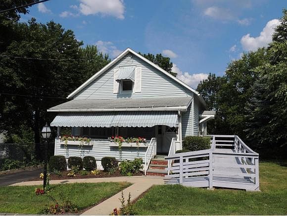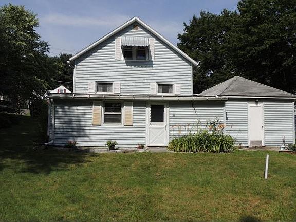 Affordable vinyl sided cape in the heart of the village near conveniences. Nicely landscaped lot, attached garage, front sitting porch, 1st floor bedroom, bath & laundry, municipal electric (lower rates), sidewalks; low taxes! So much potential, add your updates and enjoy. Newer vinyl floor in bath, new refrigerator, furnace 2004. Washer and dryer as is