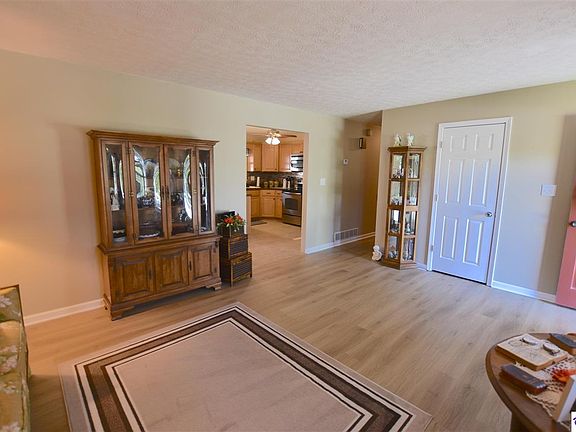 Discover this inviting single-story home with an unfinished basement, ideally located within the Elizabethtown city limits. The basement offers a convenient laundry area and an attached two-car garage, while the main level features a comfortable master bedroom with a private bath, two additional bedrooms, and a second full bath. The spacious kitchen and dining combination flows into a large family room highlighted by a wood-burning fireplace, creating a warm and welcoming atmosphere. This home has been tastefully updated and is move-in ready. Exterior features include a covered front porch, a partially covered back deck, a generous backyard with mature shade trees, and a detached 28x30 garage with concrete floors, water, and gas heat. Situated on just over an acre, this property combines modern updates with extra space and convenience, making it a rare find in the city.