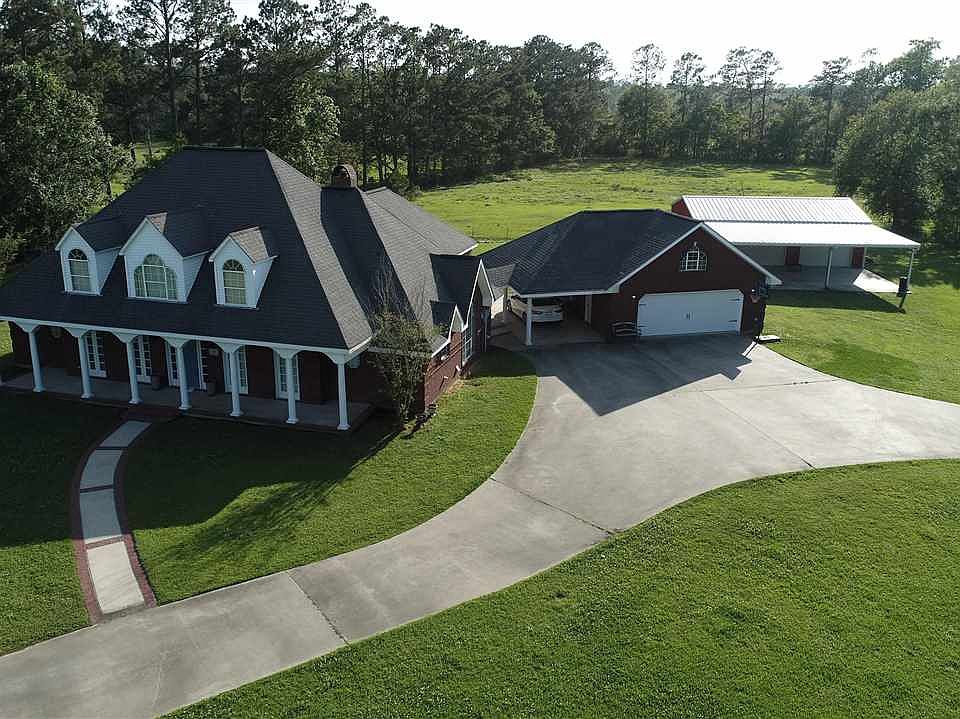 Classy, elegant living on Doty road located North of I-10 and out of city limits! This place checks off all the boxes: 3 acres, home is nearly 3500 sq ft with 3 bedrooms, office with closet that could be 4th bedroom, 2nd den or gameroom that could serve as MIL or 5th bedroom (with a separate entry door), 3 full baths, (1) 1/2 bath, formal dining, living area with high ceilings and floor to ceiling bricked fireplace and staircase leading to 2nd story that is perfect for those memorable prom pics! Kitchen with jennaire appliances and custom soft-close cabinets, trendy custom backsplash, double oven and commercial refrigerator. Natural walnut hardwood flooring, beautiful tile, and brand new carpet upstairs just recently installed. 30x40 shop on slab with plumbing for bath, 2 roll up doors, one walkthrough and all insulated with water and electric. One porte cache, and 3 car-carport, make your appt today! Per seller: **Current flood policy $516, flood zone C per policy