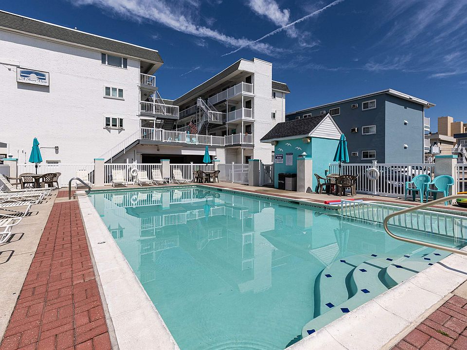 Yearning for a beach get-a-way? Here is a truly affordable option - this charming Shore View Condominium is a beach block unit that offers everything you need! Imagine waking up to ocean views, enjoying your morning coffee on your private balcony, or taking a refreshing dip in the pool. This delightful unit, sold fully "TURN KEY," is ready for you to move in and make it your own this summer - or rent it for income! With no rental desk and no restrictions on usage, you have complete freedom—rent it out yourself, enlist a real estate company, or simply savor every moment for yourself all summer long. Inside, you'll find a cozy living room with a dining area, a well-equipped kitchen, a spacious bedroom with sliders leading to your private balcony, and a full bath with a tub. The unit is tastefully decorated with seashore-themed furnishings and includes a wall air conditioning unit for those warmer days. Enjoy a range of amenities, including a pool, BBQ grills, laundry room, bike rack, elevator, sun deck, and community room—all accessible to owners. There is also onsite property management for peace of mind. Located just one block from the ocean and sea wall, this condo is also within close distance of the band shell, lighthouse, and Anglesea's vibrant nightlife. The condo fees are $862 per quarter, covering water, sewer, exterior insurance, cable, and routine common area maintenance. There is also a one-time capital contribution due at settlement in the amount of $862. This pet-friendly condo association also welcomes your furry friends! Don't miss out on this opportunity to own a slice of the shore - schedule a visit today to see all that this condo has to offer.