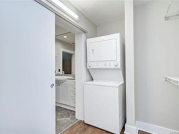 Spectacular Uptown location w/ beautiful city views! Modern condo in walking distance to all Uptown Charlotte has to offer & a short walk to light rail station (blue line) to get to Southend or NoDa in no time. Enjoy the city view from you living space with floor to ceiling windows or on your private balcony. Upgraded kitchen with rare new full range, stainless steel appliances including refrigerator, white cabinets, subway tile backsplash, and granite countertops. LVP flooring throughout, Large bathroom with tiled floor & shower, deeded secure garage parking space, ceiling fan in bedroom as well as living, large walk-in closet with washer and dryer included. Community rooftop terrace w/ grilling station and Community Amazon Hub. Contact us to schedule a showing.