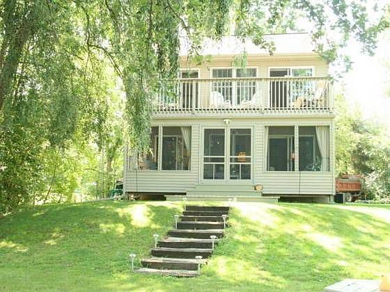 PROFESSIONALLY DESIGNED,WELL APPOINTED GORGEOUS 2 BEDRM 2 BATH VACATION OR YEAR ROUND HOME.OVER 80' OF ROCK RIVER FRONTAGE NEAR LAKE KOSHKONONG.PROPERTY IS ADJOINED BY 2 SMALL SPRING FED PONDS and CREEKS.OPEN KITCHEN, DINING and LIVING RM AREAS.KITCHEN and DINING AREAS HAVE HARDWD FLRS,3 PANTRIES PROVIDE GENEROUS STORAGE.UPPER MASTER SUITE LEADS TO ELEVATED DECK.MAIN LVL OPENS TO ROOMY SCREENED PORCH.THE DESIGN,LAYOUT,LOCATION OF THIS HOME IS HARD TO COME BY AT ANY PRICE. RV HOOK-UPS ON SITE