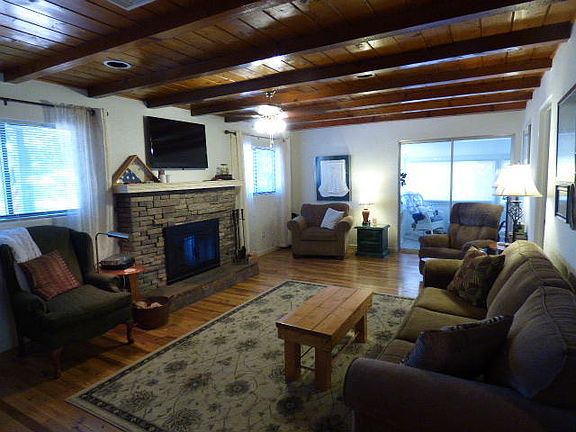 Beautifully remodeled home on very large lot in town. The home was built in 1965 with a large addition in 1982. The home has 3 bedrooms, 2 baths with a living room plus office area, and sun room. The Master bedroom/bath is on the main floor, 2 additional large bedrooms and bath upstairs. Kitchen has newer cabinets and stainless steel appliances. The downstairs has oak plank flooring, beamed tongue a groove ceilings and stone fireplace that is plumbed for gas but needs meter. Large deck to enjoy treed backyard with garden area and fruit trees on drip system. Perennial garden in front yard on drip system. Electric gated entry, fenced yard, with plenty of parking.