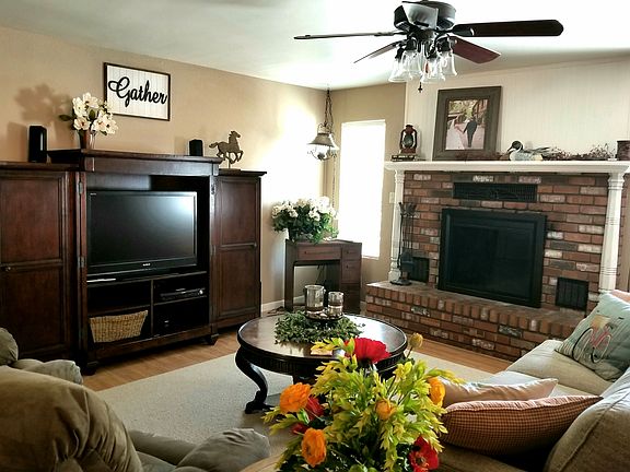 Welcome home! This 4 bdrm 2bath home sits on a cul-de-sac lot at the end of the street. Enter in to be greeted by an updated spacious, open floor plan w/beautiful laminate floors & a cozy brick wood burning fireplace. The kitchen has been updated and features knotty alder cabinets, gorgeous countertops with a large breakfast bar, tile floors and stainless steel appliances. The home is painted in a nice soothing color palette. Bathrooms feature tile backsplashes and are updated. The master features a walk in closet and direct access to your huge private wood deck. The property has a green belt in the back for extra privacy and the feeling of being away from it all right in the middle of town. There is room to park your toys on the side of the home. Summer is fast approaching don't wait!