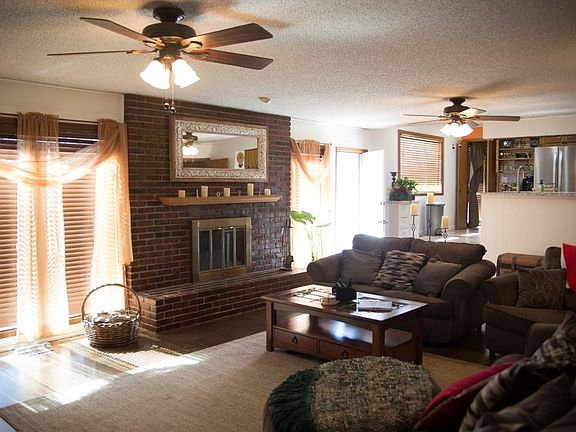 - INT/EXT FEATURES: Garage Door Opener, Fireplace, Patio, Storm Shelter, Outbuildings