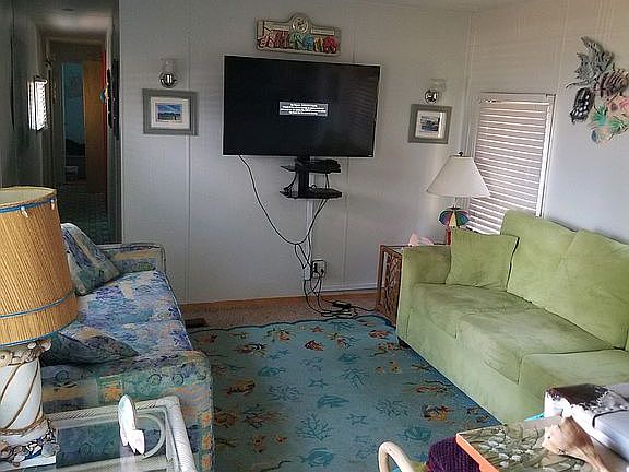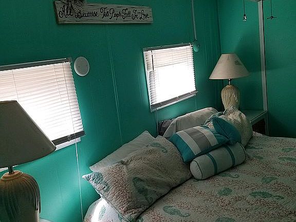 Located in the gated community of Island Harbor Marina on beautiful Emerald Isle. The view can not be beat! The home has two bedrooms, one full bath and a large outdoor shower. Decorated with bright, beach colors. We are selling fully furnished, less a few items. Included are a utility shed, full sized washer and dryer, appliances, king and queen sized beds. The roof had new heat seal applied last fall and a new AC unit 3 years ago. The home has been well maintained and is very clean. The neighborhood is private and has the best neighbors. Lot rent is $6000 annually and is paid till December 31 2020 through Spell Howe Reality. Please text for inquiries 919-482-0659.